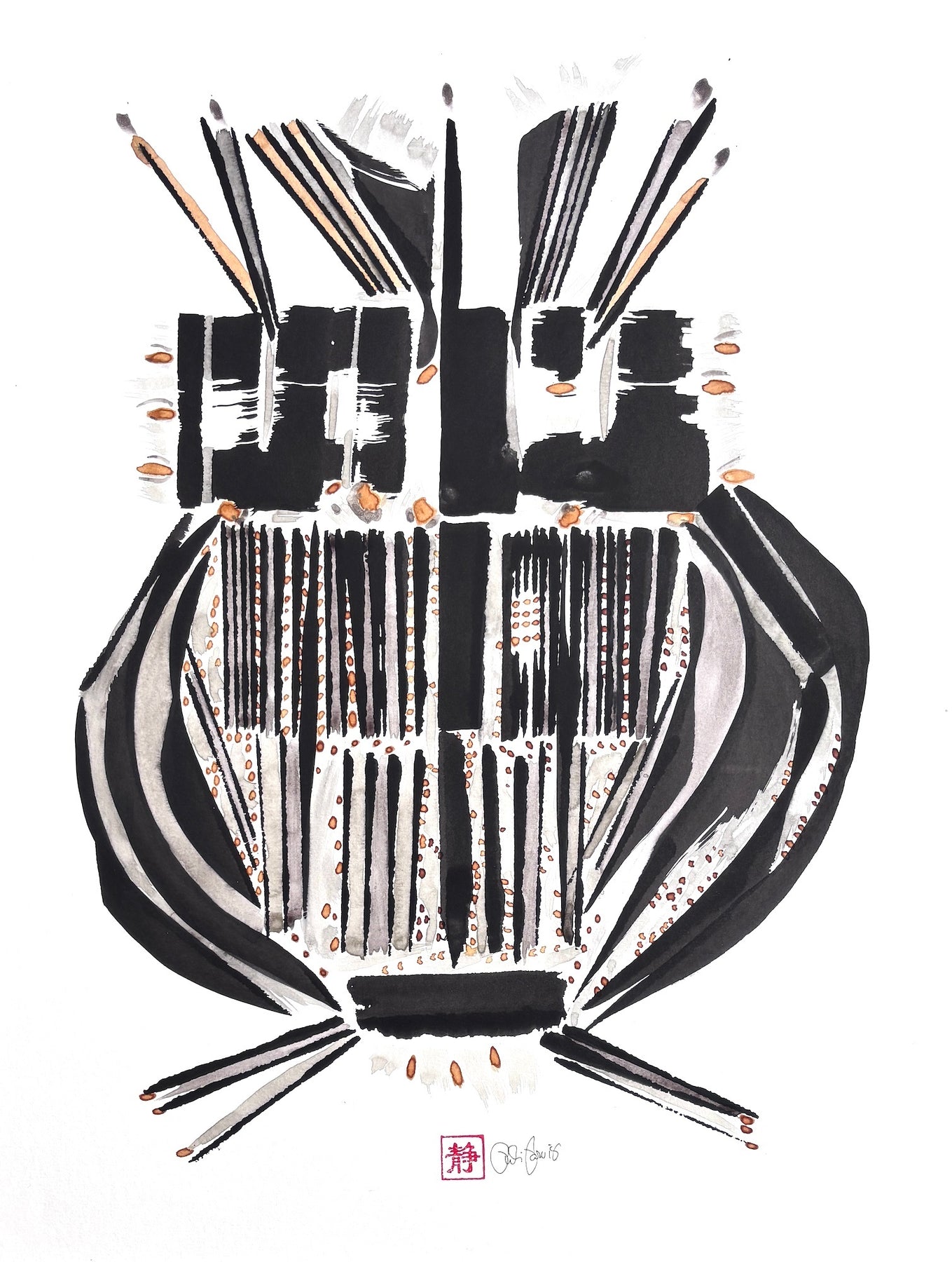 Black Sumi and handmade inks on paper.